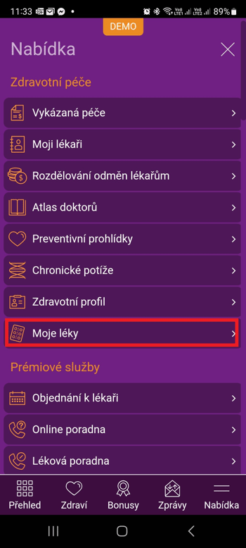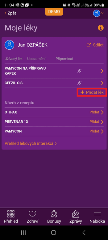 Postup ověření lékové interakce v aplikaci VITAKARTA