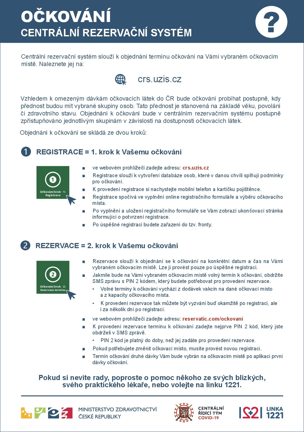 Pro občany ČR je k dispozici zároveň i bezplatná linka 1221. Aktuální informace o koronaviru COVID-19 najdete na portálu MZ ČR.: https://koronavirus.mzcr.cz/ockovani-proti-covid-19/
