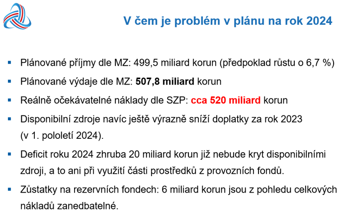 Ministerstvo zdravotnictví totiž v současnosti (začátek října 2023) navrhuje pro rok 2024 navýšení plateb téměř dvojnásobné, což by vedlo k tomu, že by hospodaření zdravotních pojišťoven bylo už čtvrtý rok v řadě výrazně deficitní. Pokrytí těchto ztrát z rezerv pojišťoven by už navíc v budoucnu nebylo možné.
