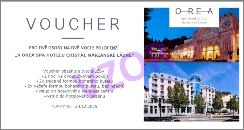 Relaxační pobyt pro dvě osoby na dvě noci v Orea Spa hotelu Cristal Mariánské Lázně vyhrál pan Stanislav ze Zlínského kraje. Předávka proběhne v červenci, až se vrátí z dovolené.