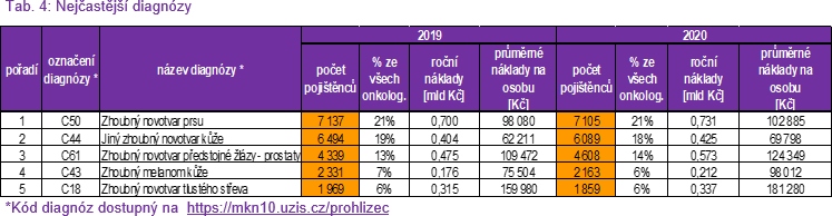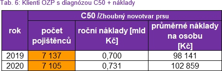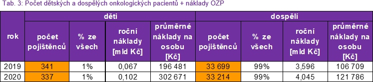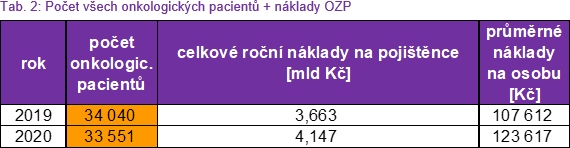 V následujících tabulkách jsou uvedeny celkové roční náklady na onkologické pacienty (pojištěnce OZP) hrazené z veřejného zdravotního pojištění.