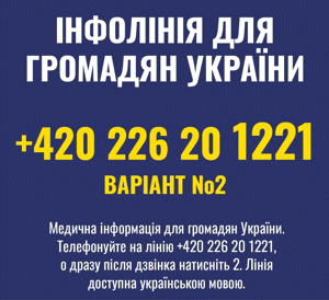 Z technických důvodu bude v termínu od 21.08.2025 - 29.08.2025 ukrajinská telefonní infolinka dostupná v tuto omezenou pracovní dobu: od 10:00 - 14:00 hodin.